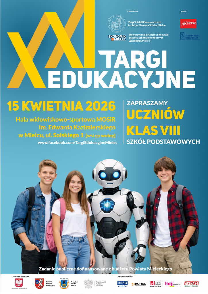 Zespół Szkół Ekonomicznych im. bł. ks. Romana Sitki w Mielcu, we współpracy ze Stowarzyszeniem Na Rzecz Rozwoju Zespołu Szkół Ekonomicznych „Ekonomik.Mielec”, jest organizatorem XXI Targów Edukacyjnych. Wydarzenie odbędzie się 15 kwietnia 2026 r., w godzinach 9.00–14.00, w Hali widowiskowo-sportowej im. Edwarda Kazimierskiego Miejskiego Ośrodka Sportu i Rekreacji w Mielcu przy ul. Solskiego 1.