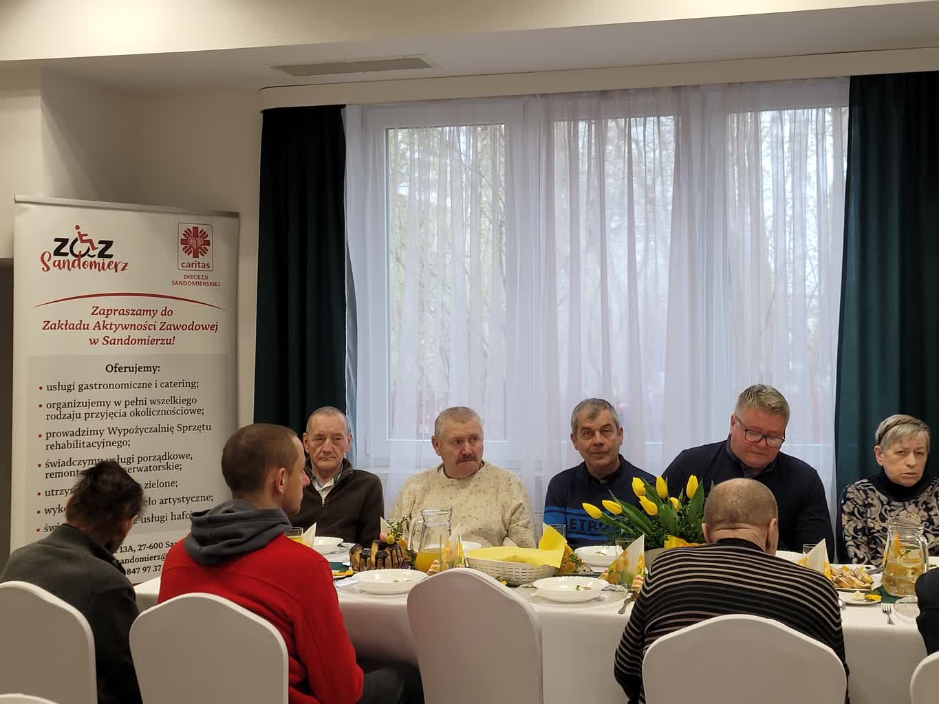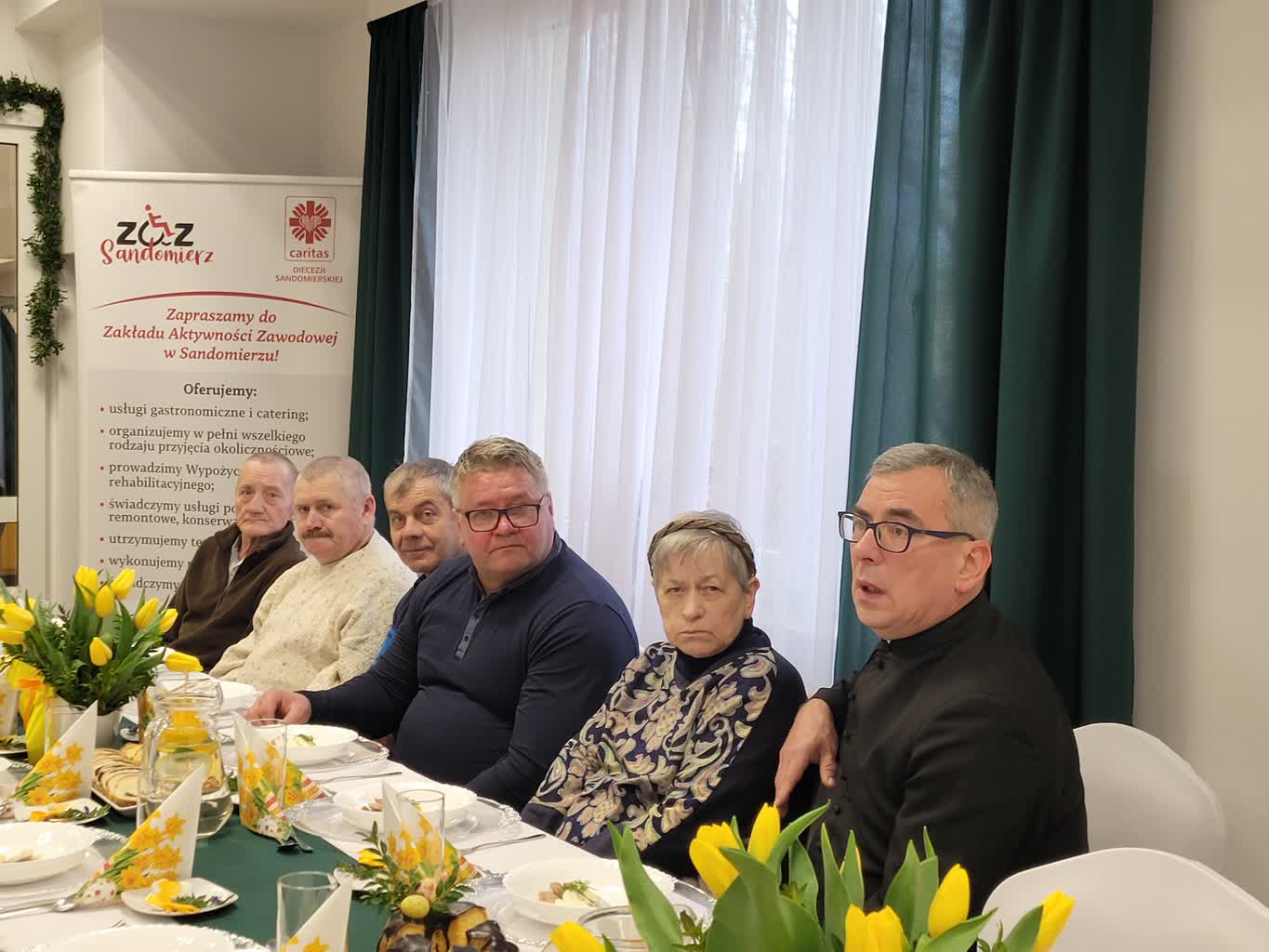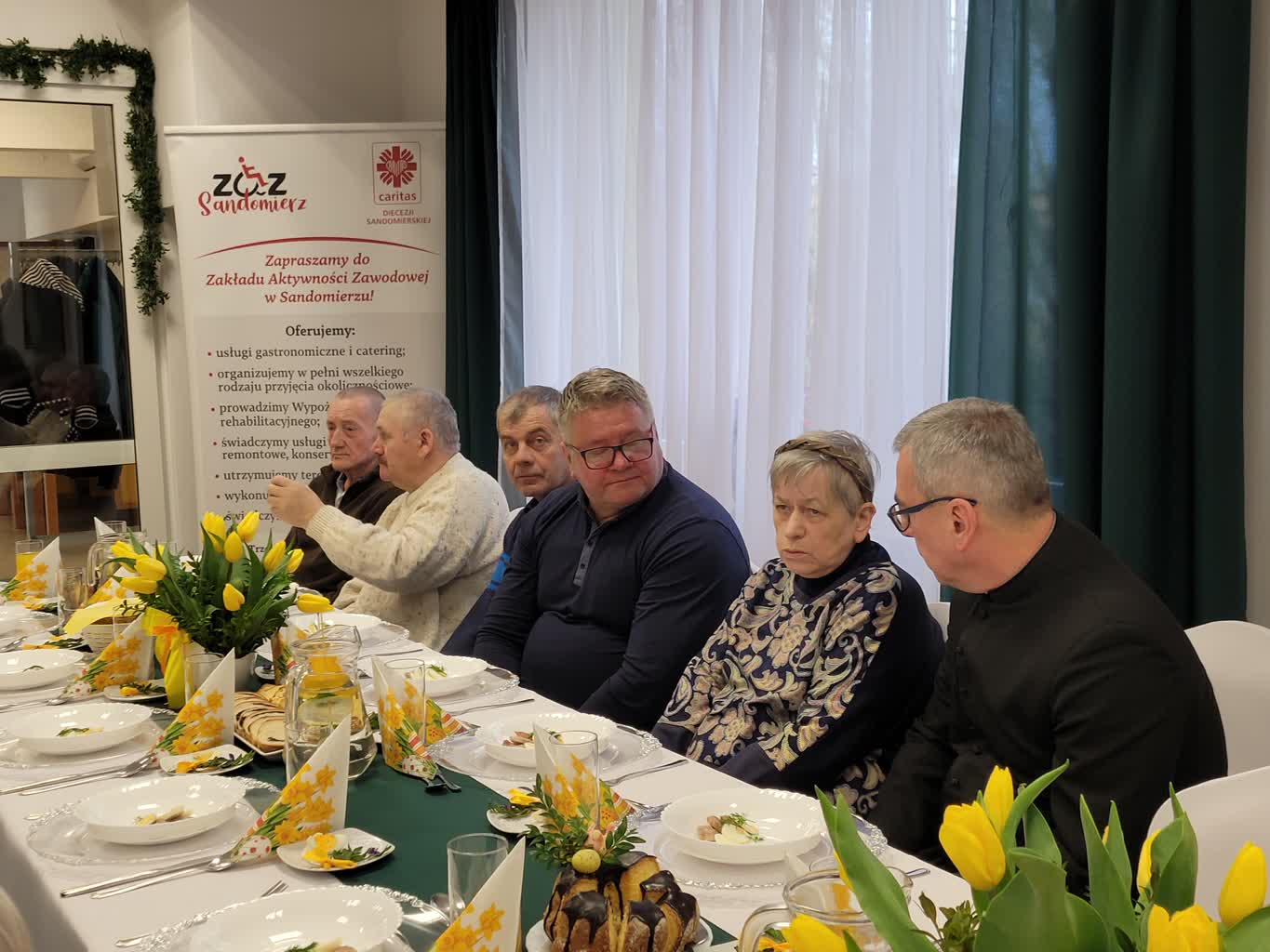 W programie spotkania znalazł się uroczysty obiad w siedzibie Zakładu Aktywności Zawodowej w Sandomierzu prowadzonego przez Caritas.