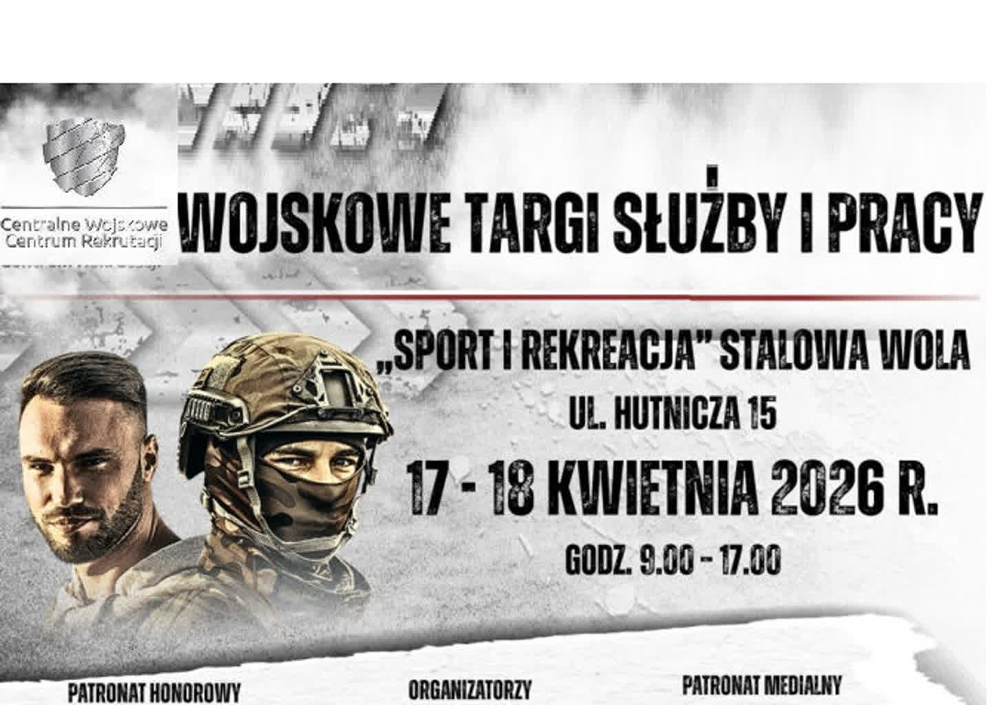 Wojskowe Targi Służby i Pracy w Stalowej Woli to dwudniowe wydarzenie organizowane przez MON i Wojskowe Centrum Rekrutacji. Targi ruszają w piątek 17 kwietnia w obiektach „Sportu i Rekreacji Stalowa przy Hutniczej 15 i potrwają do soboty.