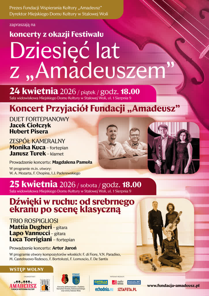 Fundacja Wspierania Kultury „Amadeusz” oraz Miejski Dom Kultury w Stalowej Woli zapraszają na koncerty jubileuszowe.