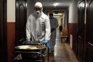 Całodobowy Dom Opieki ,,Liliowy Dworek” w Łącznej stał się nowym ogniskiem koronawirusa. Zespoły wymazowe złożone z żołnierzy 10. Świętokrzyskiej Brygady Obrony Terytorialnej pobrały próbki od wszystkich mieszkańców. W placówce przebywa 79 podopiecznych, którymi zajmuje się kilkanaście osób personelu. Niestety u 9 opiekunów i 4 pensjonariuszy potwierdzono już zakażenie SARS-Cov2. Jednak nie opuścili oni placówki i ciągle sprawują opiekę nad mieszkańcami. Od minionego weekendu stale obecni w placówce są również żołnierze 10 ŚBOT wspomagając przepracowany personel.