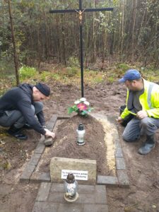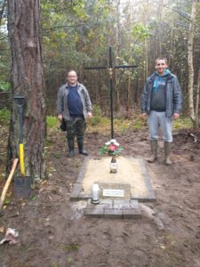 Druhowie Mateusz Flis, Paweł Konefał, Krzysztof Pasek, Karol Bieleń i Michał Tłusty oczyścili miejsce i postawili nowy krzyż a także kamień z tablicą informacyjną. Mówi Paweł Konefał.