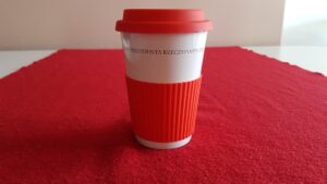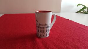 -kubek ceramiczny z uchwytem, z wizerunkiem Pałacu Prezydenckiego,