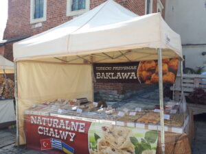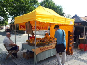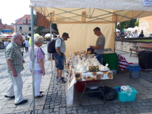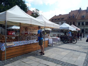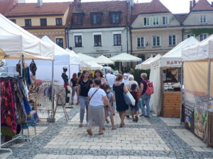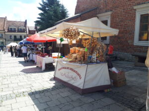 Pięćdziesięciu wystawców prezentuje swoje towary na sandomierskim rynku podczas Jarmarku Jagiellońskiego. W tym roku z powodu obostrzeń sanitarnych związanych z epidemią liczba ich jest ponad dwukrotnie mniejsza niż zwykle. Na straganach znaleźć można rękodzieło artystyczne, odzież, zabawki, biżuterię oraz lokalne kulinaria: