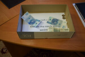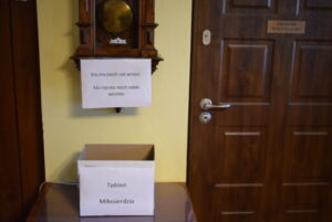 W związku z trwającym Tygodniem Miłosierdzia w Kurii Diecezjalnej w Sandomierzu pojawiły się pudełka z napisem: „ Kto ma, niech coś wrzuci. Kto nie ma, niech sobie weźmie”.