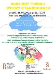 W najbliższy weekend odbędą się Dni Sandomierza. W programie dwudniowej imprezy znalazł się także rodzinny turniej wiedzy o Sandomierzu organizowany przez Miejską Bibliotekę Publiczną.