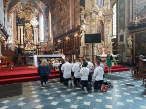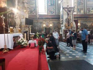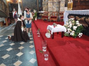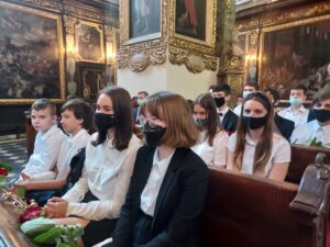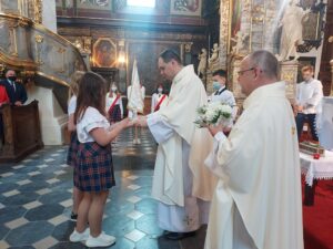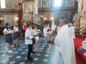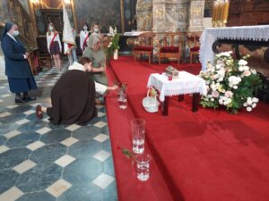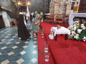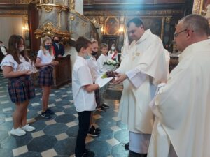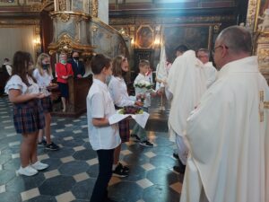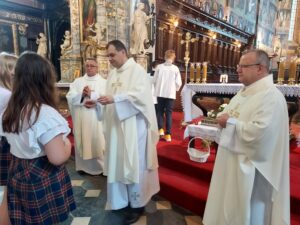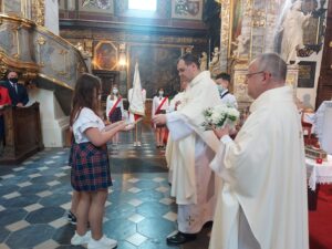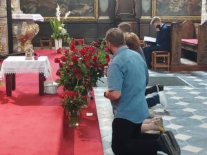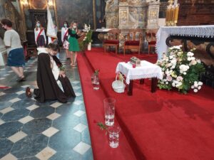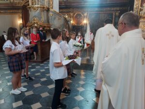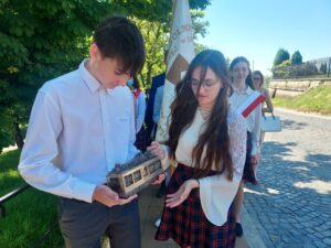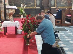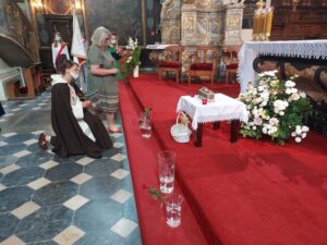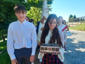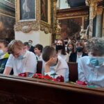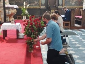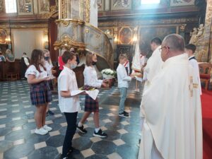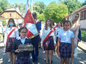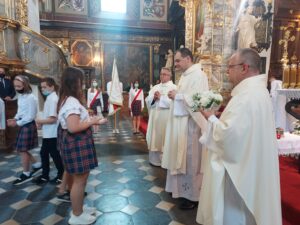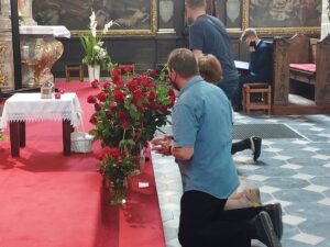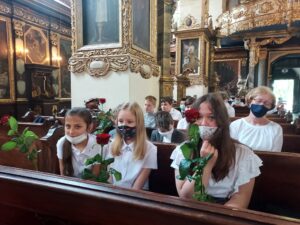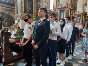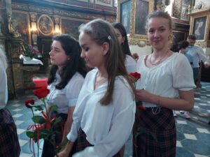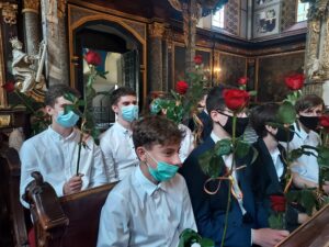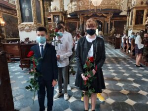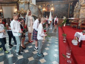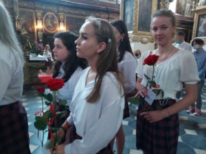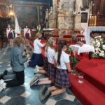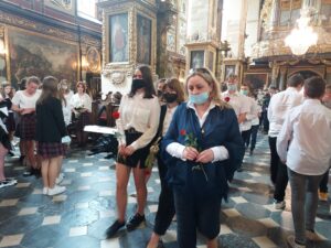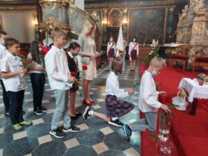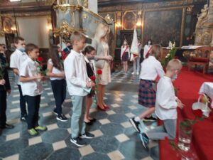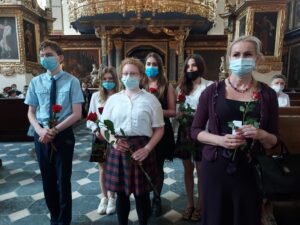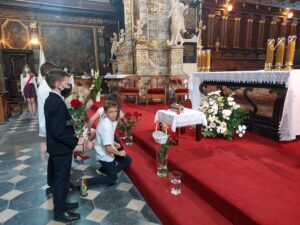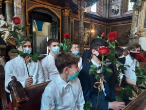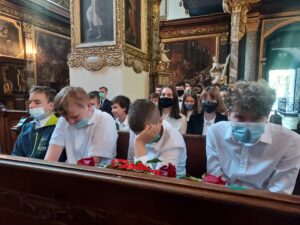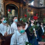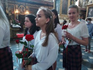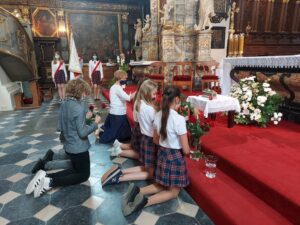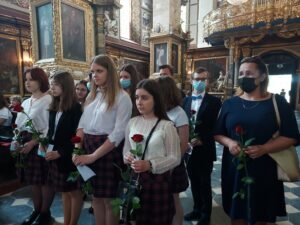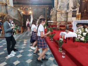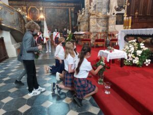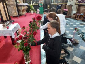 Relikwie nieśli uczniowie, dla których było to niezwykłe doświadczenie podobnie jak ich adoracja, w czasie której składano czerwone róże: