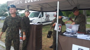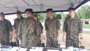 Na mobilnym stoisku promocyjnym zawód żołnierza przybliżali przedstawiciele WKU oraz żołnierze 3 batalionu radiotechnicznego i 102 batalionu lekkiej piechoty wchodzącego w skład 10 Świętokrzyskiej Brygady Obrony Terytorialnej a także podchorążowie Wojskowej Akademii Technicznej z Warszawy.
