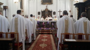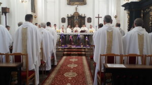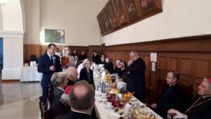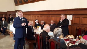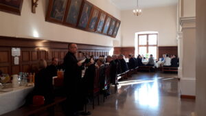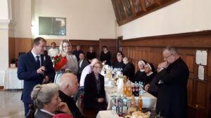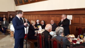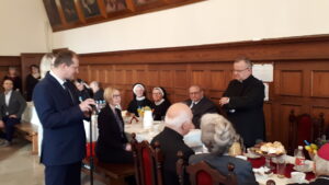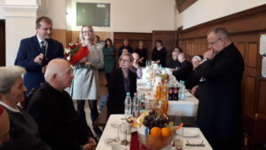 Dalsza część uroczystości miała miejsce w budynku Seminarium Duchownego. Nie zabrakło podziękowań, które wygłosił dyrektor wydawnictwa ks. Leszek Pachuta, życzeń oraz okolicznościowego tortu.