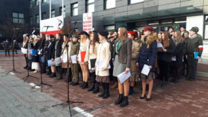 Po części oficjalnej zebrani przeszli na plac przez Starostwem Powiatowym, gdzie odbył się koncert pieśni patriotycznych w wykonaniu młodzieży z II LO im. Tadeusza Kościuszki i pokaz musztry w wykonaniu klas mundurowych działających w Zespole Szkół Gastronomicznych i Hotelarskich. Pojawili się też motocykliści.