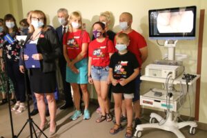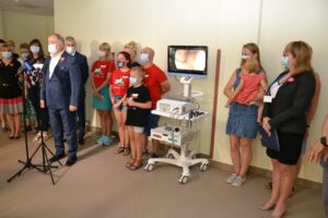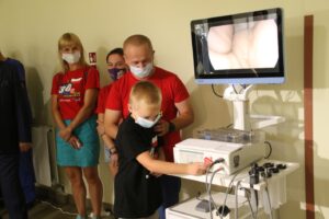 Przekazanie sprzętu szpitalowi zakończyło symboliczne naklejenie serduszka wielkoorkiestrowego przez jednego z najmłodszych wolontariuszy WOŚP w Stalowej Woli. Odbyła się również prezentacja działania zakupionej aparatury endoskopowej.